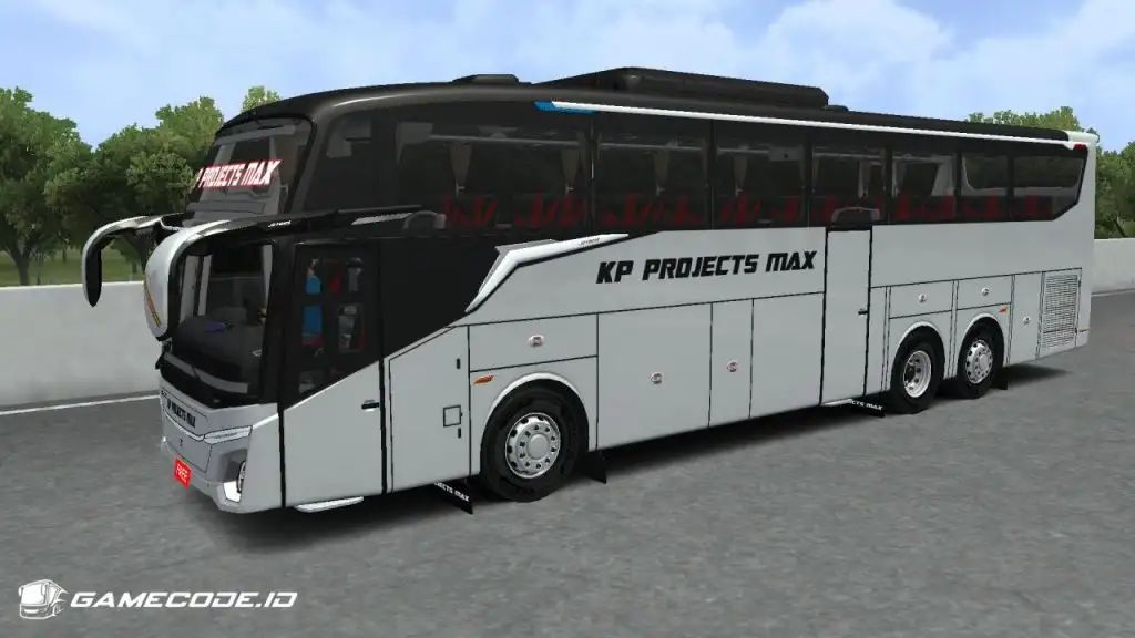 JB5 tronton by KP Projects ini hadir dengan bus ala pariwisata kelas atas dan perjalanan jarak jauh. Tampilan eksterior mengusung warna abu-abu terang yang dipadukan dengan hitam pada area kaca, menciptakan kesan elegan. Tulisan KP PROJECTS MAX pada bodi ini menunjukkan bahwa mereka adalah pemilik asli dari mod tersebut.
