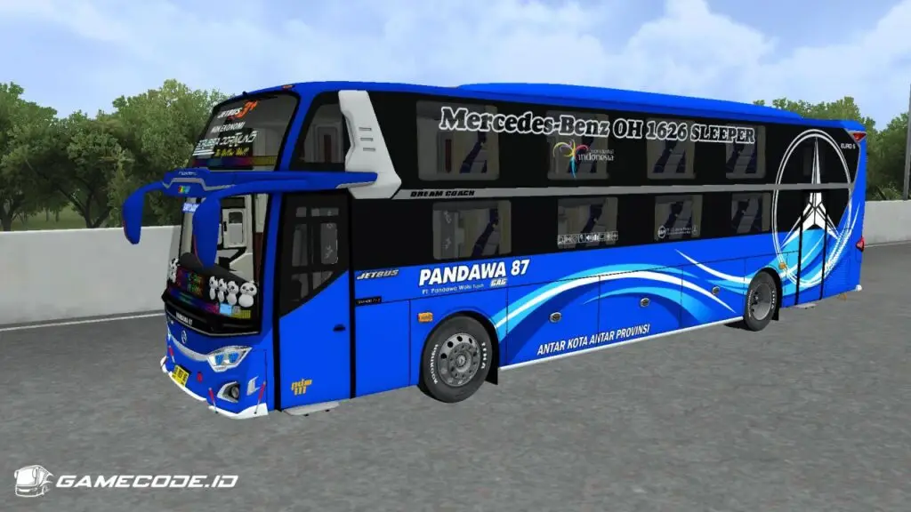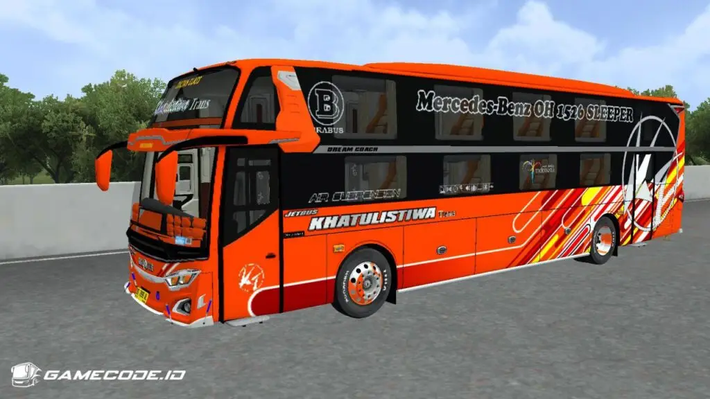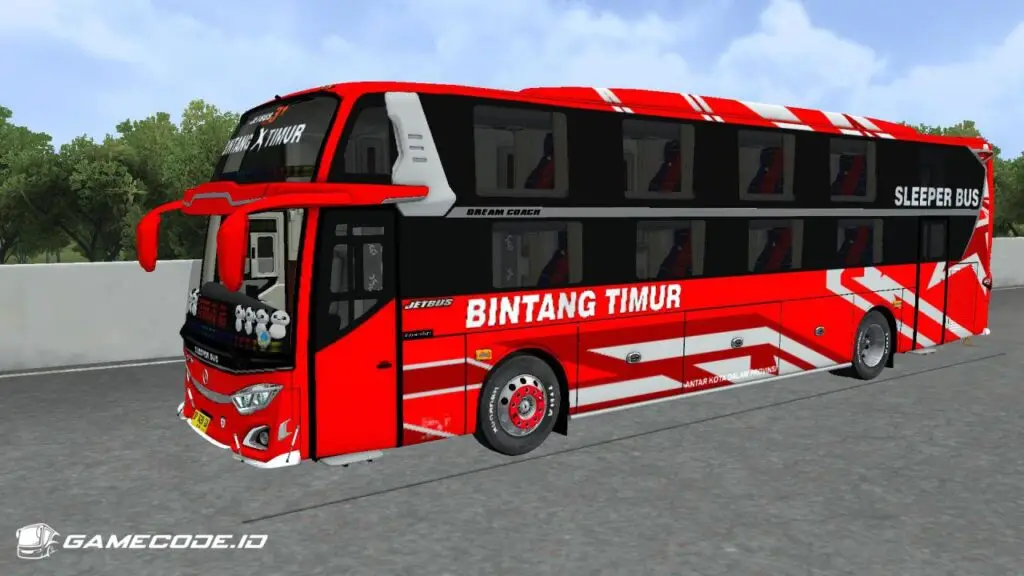 Mod Jetbus 3+ Dream Coach Full Acc yang satu ini memiliki konsep bus sleeper (Dream Coach), kelihatan dari sisi sampingnya yang punya dua deret jendela kecil memanjang, model kamar bertingkat yang biasa dipakai buat kabin tidur, bukan kursi biasa.