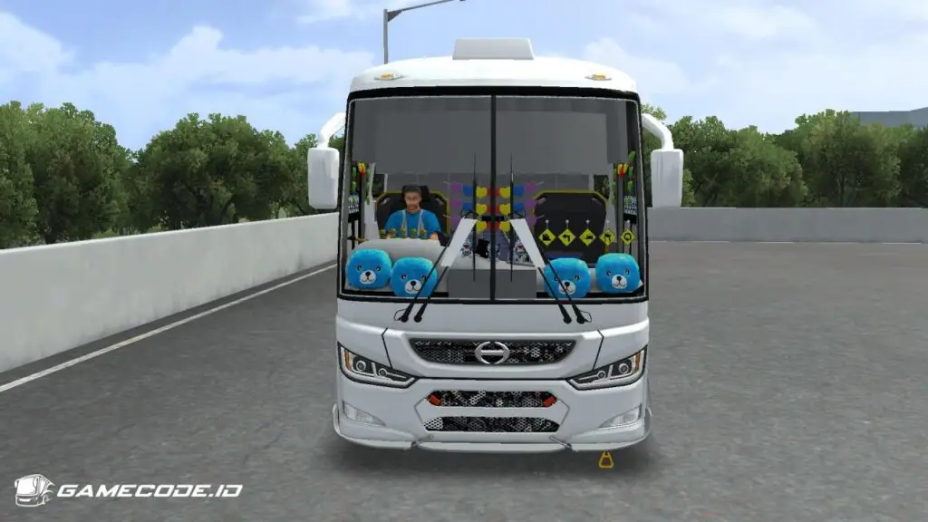 Yang bikin mod ini keliatan full acc ada di area kaca depan, dashboard-nya penuh hiasan dan boneka, sampai bikin kabin depan kelihatan hidup dari luar.