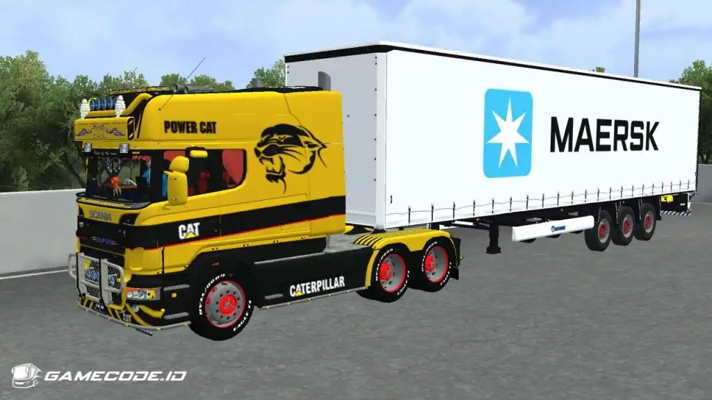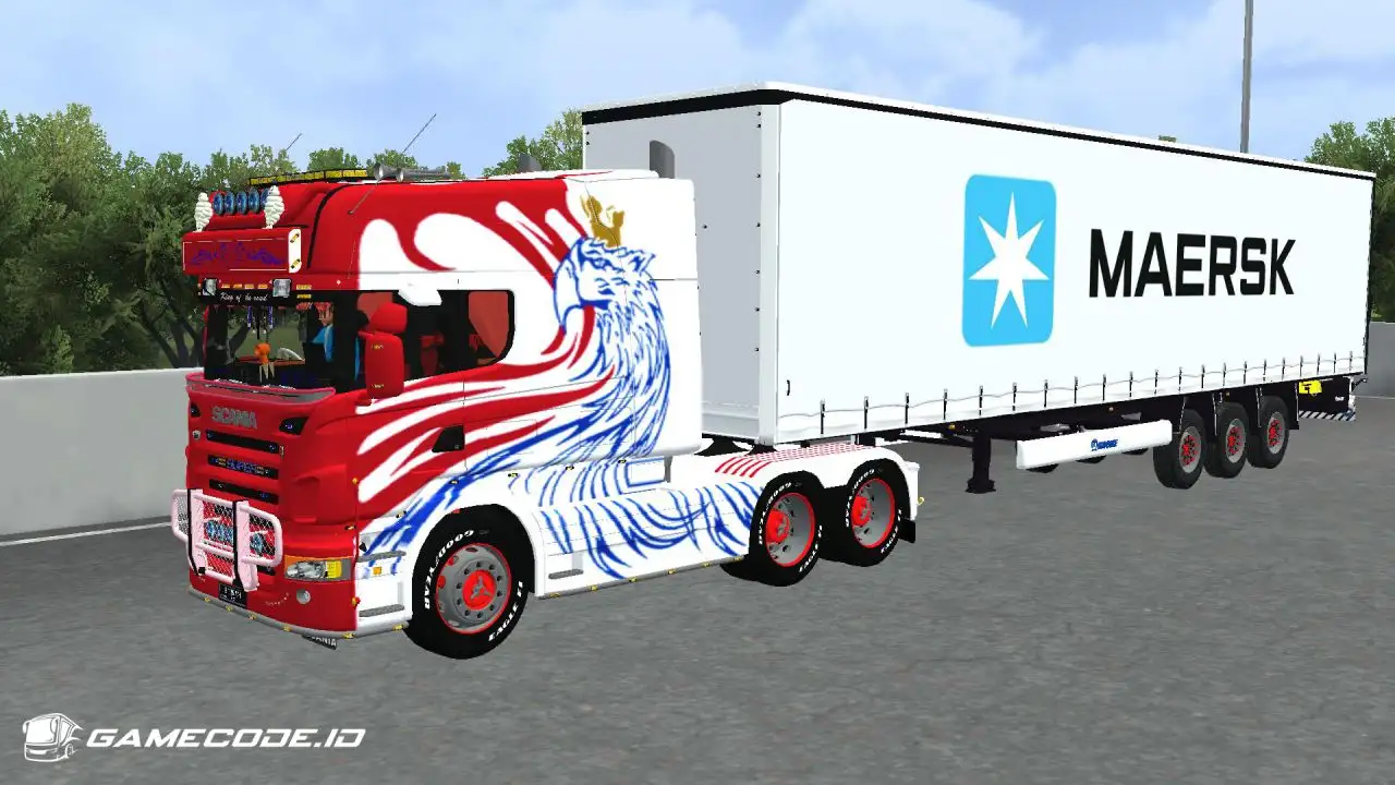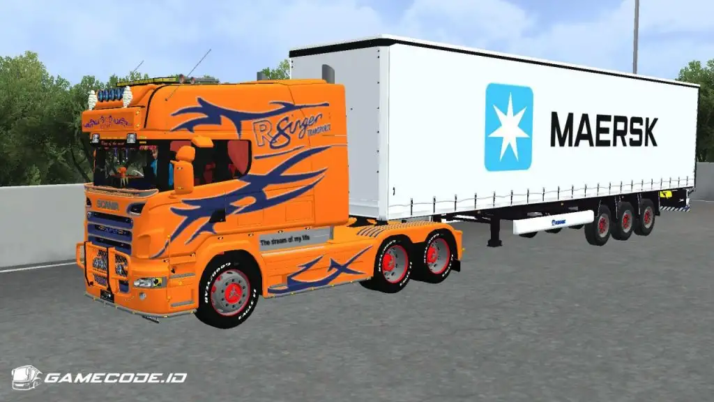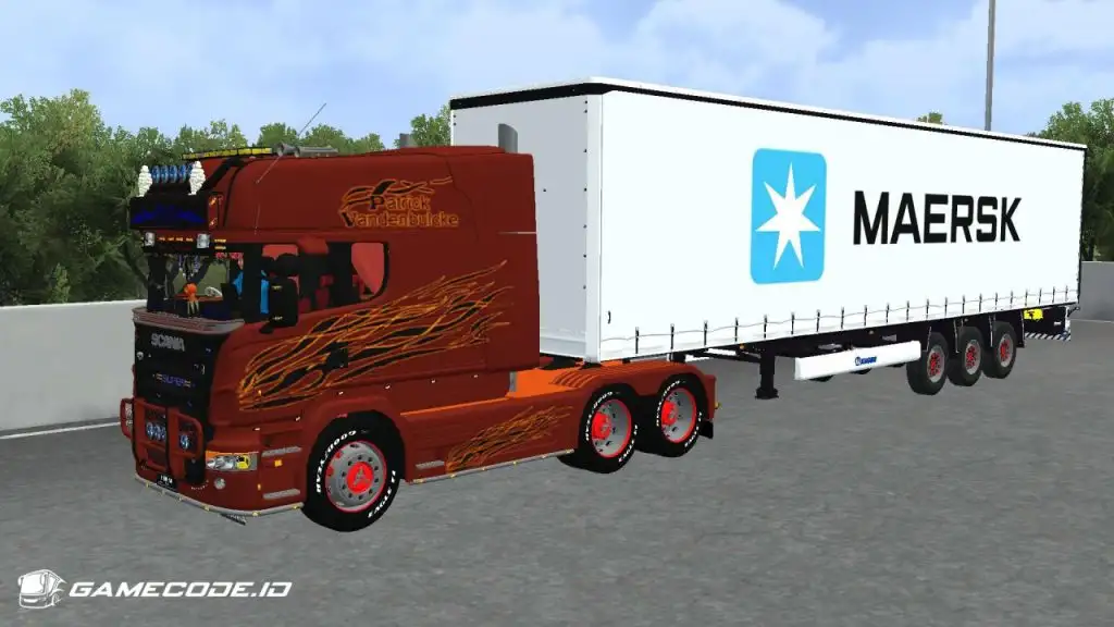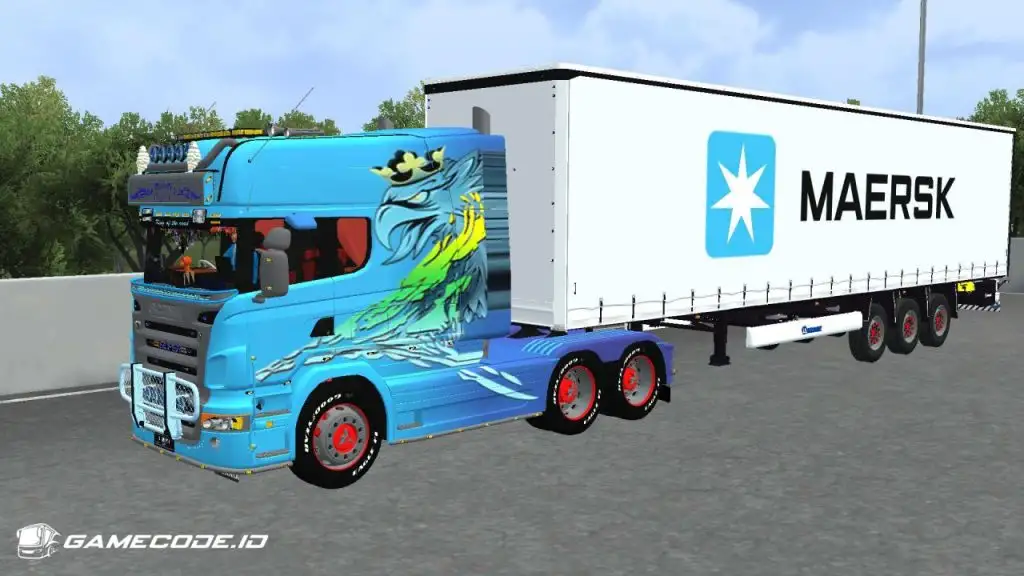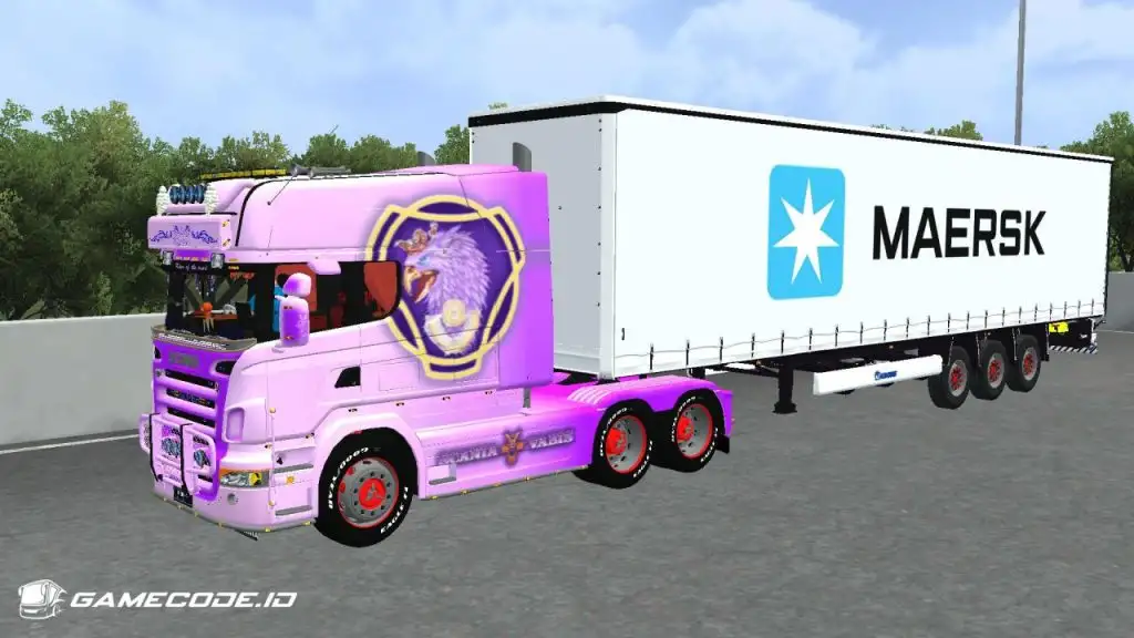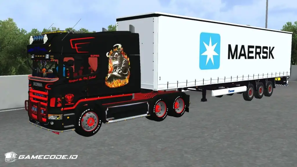 Trailernya menggunakan jenis boks berwarna putih dengan logo Maersk berukuran besar di bagian samping, menampilkan tampilan yang cukup familiar seperti yang biasa dijumpai dalam game ETS 2.
